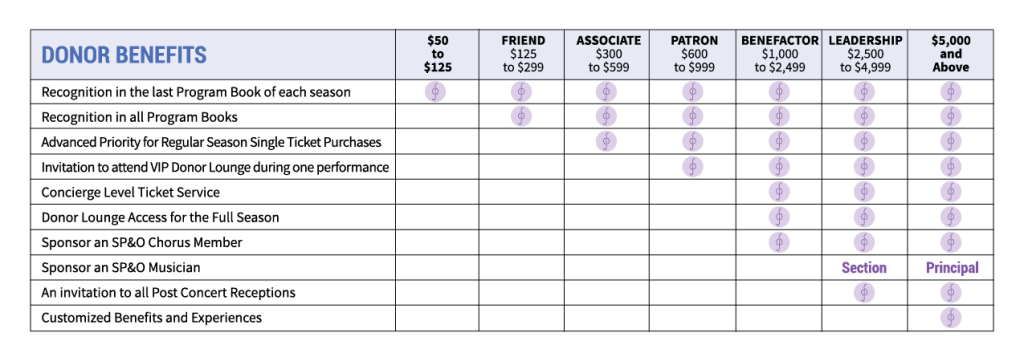 - Sponsor a Section Musician to lead the SP&O’s musical excellence